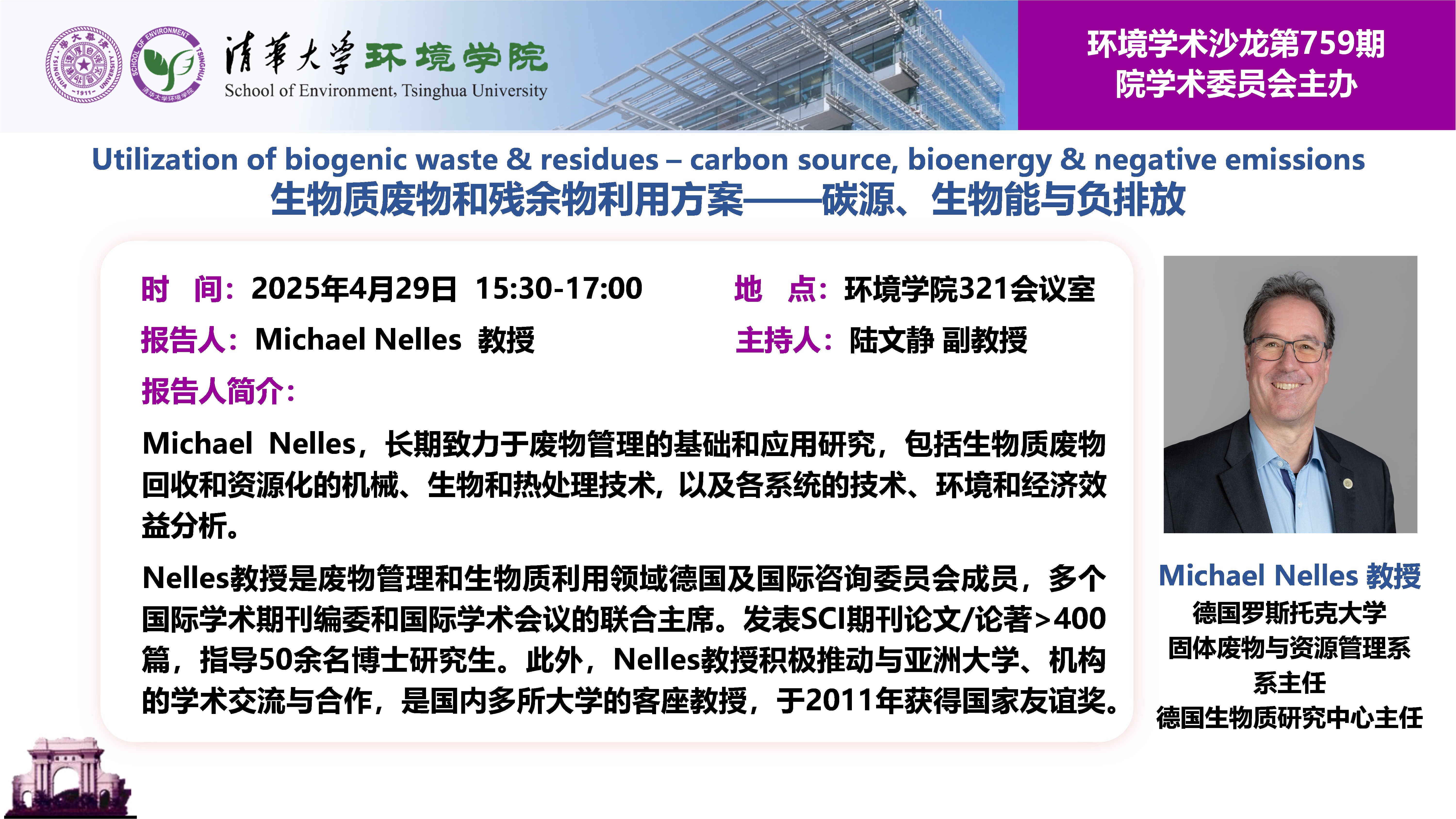 报告人:Michael Nelles 教授,德国罗斯托克大学固体废物与资源管理系系主任、德国生物质研究中心主任