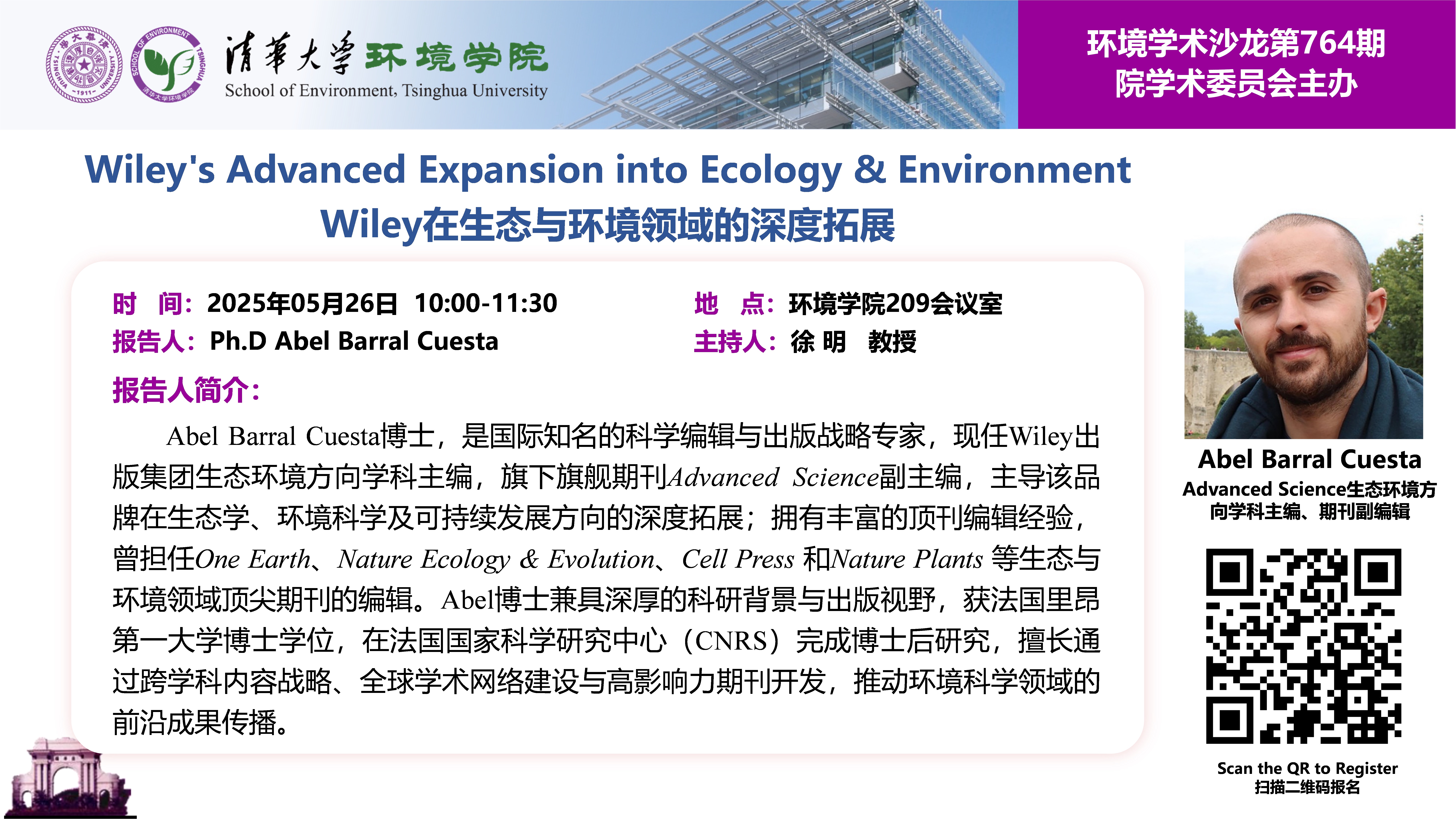 报告人:Abel Barral Cuesta博士,Wiley出版集团生态环境方向学科主编、Advanced Science副主编