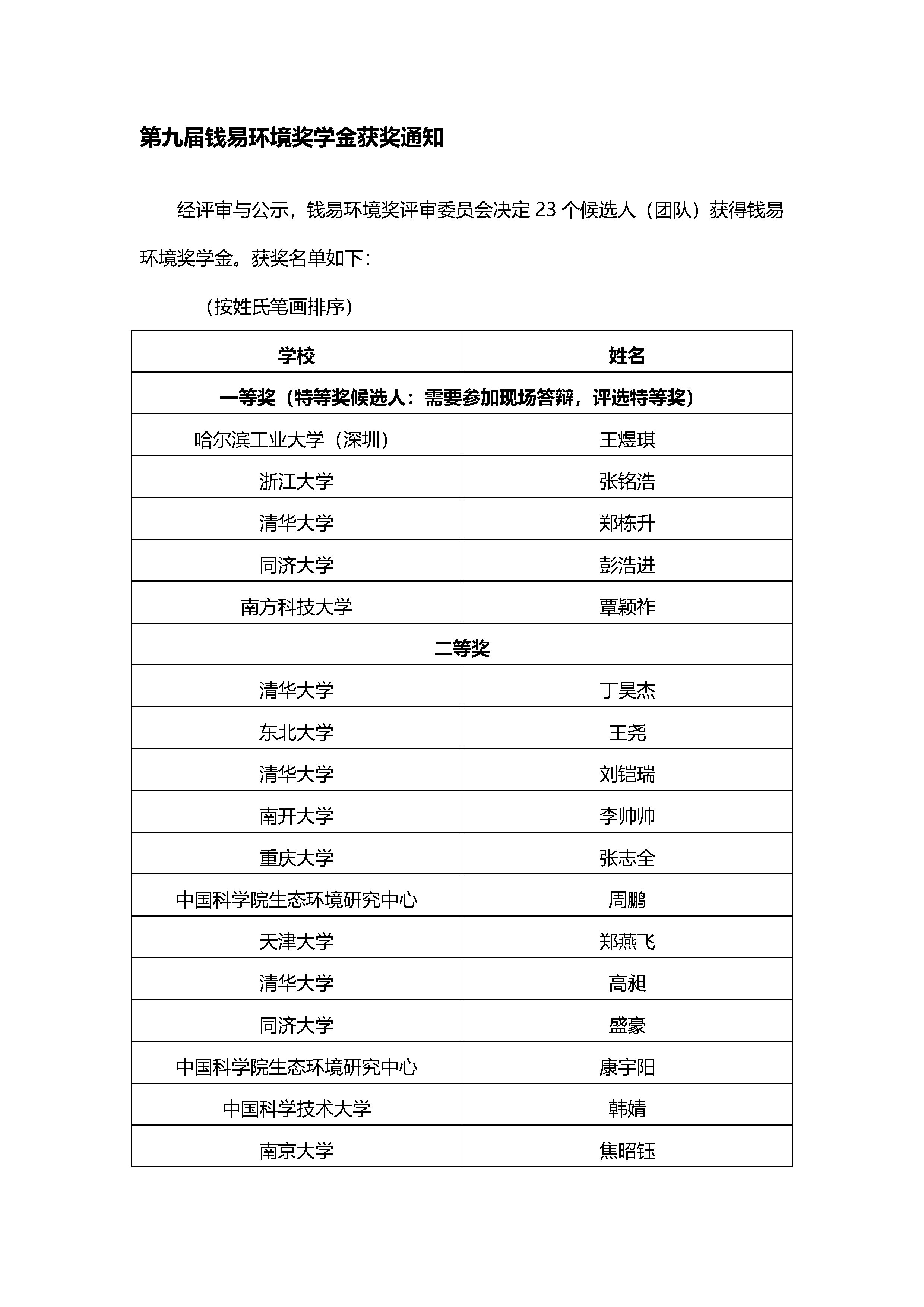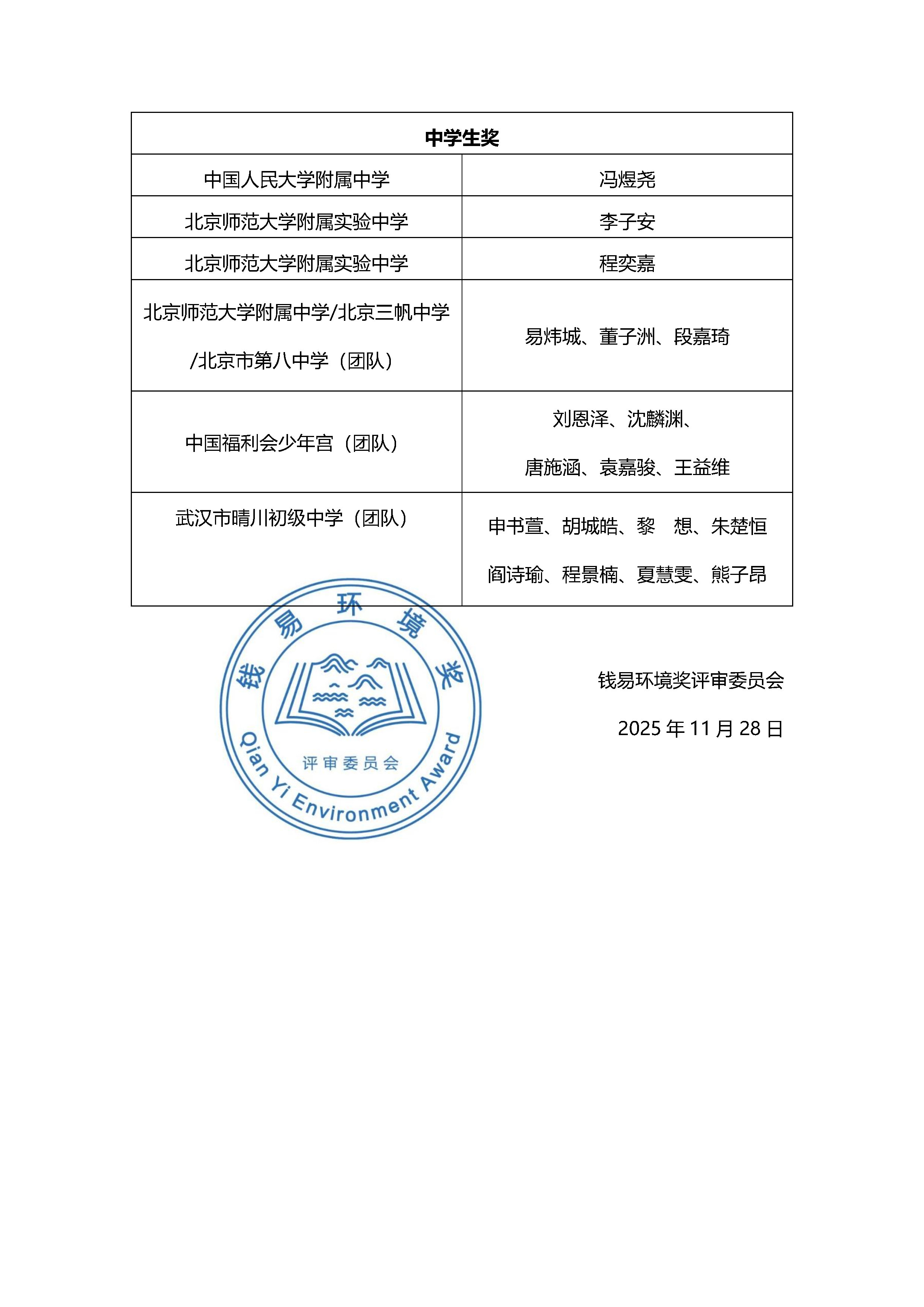钱易环境奖